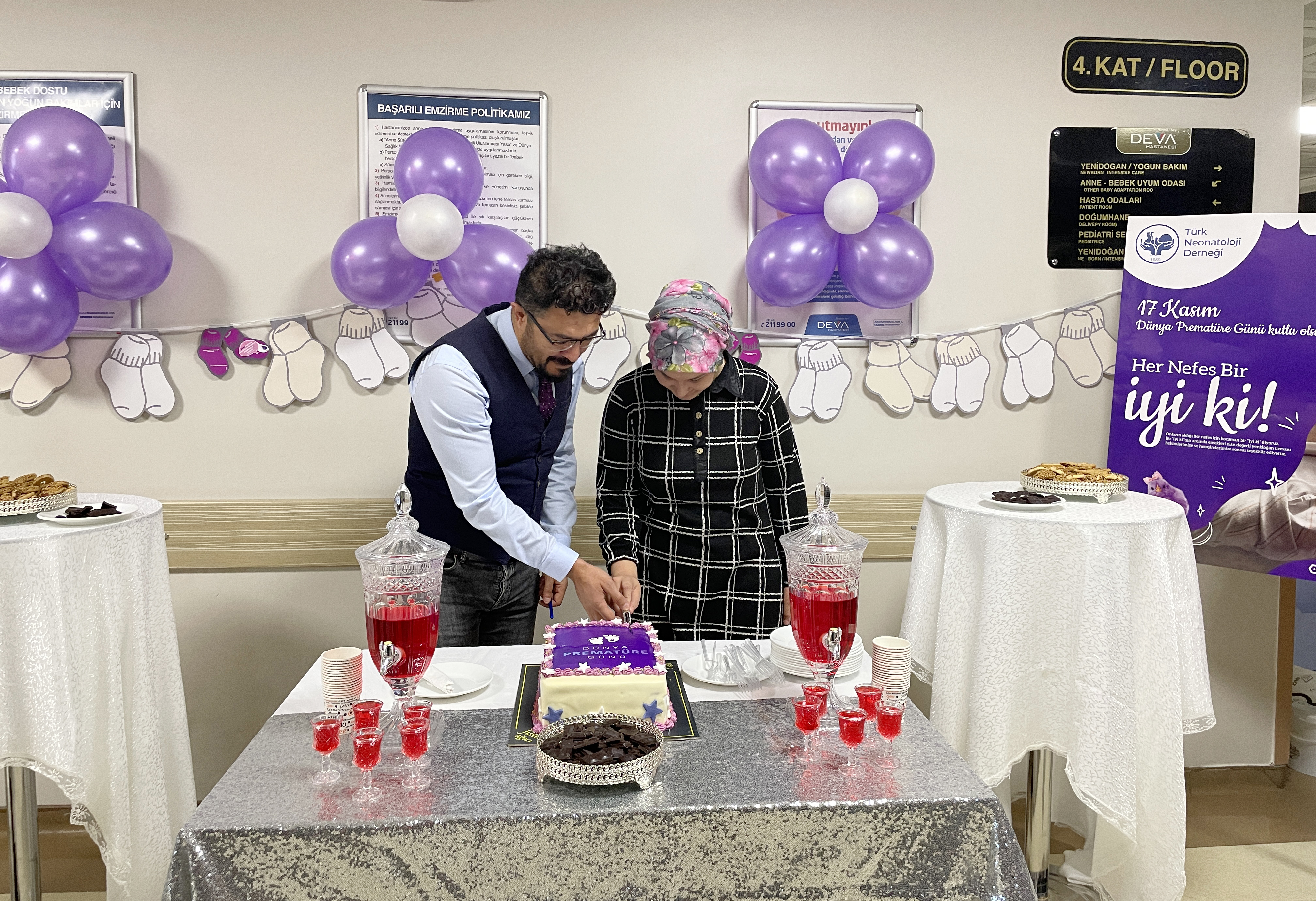 Etkinlik sonunda prematüre doğan bebeklerin aileleri ile hekimler ve sağlık çalışanlarımız bir araya gelerek pasta kesti.